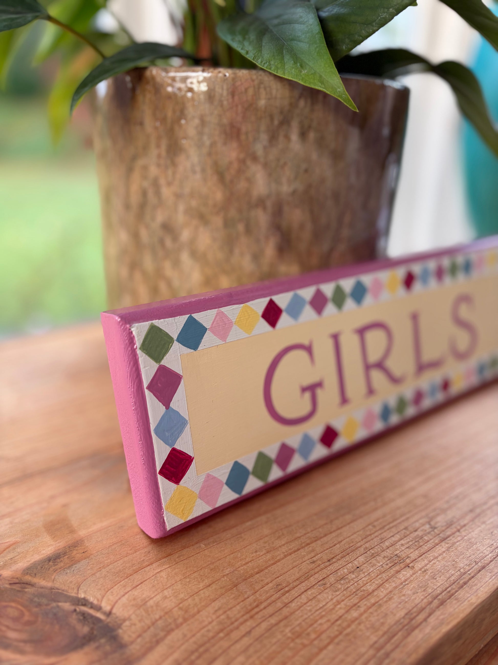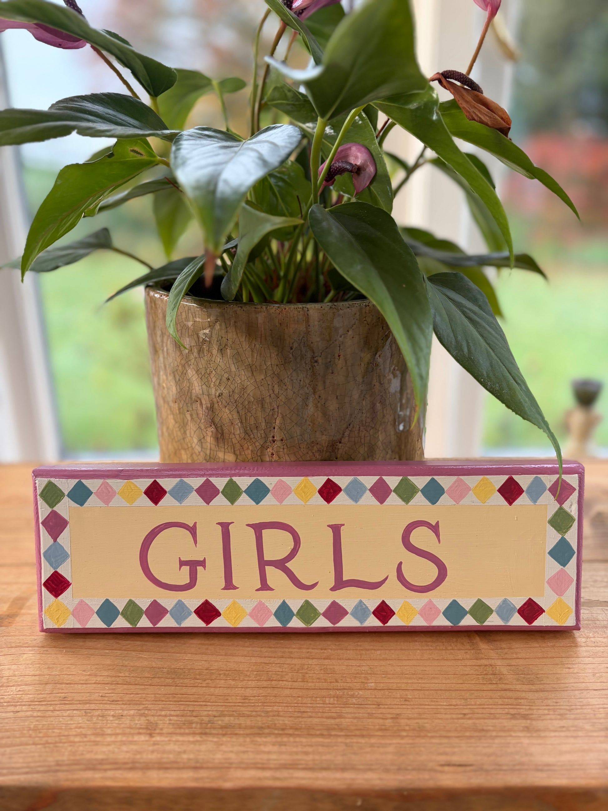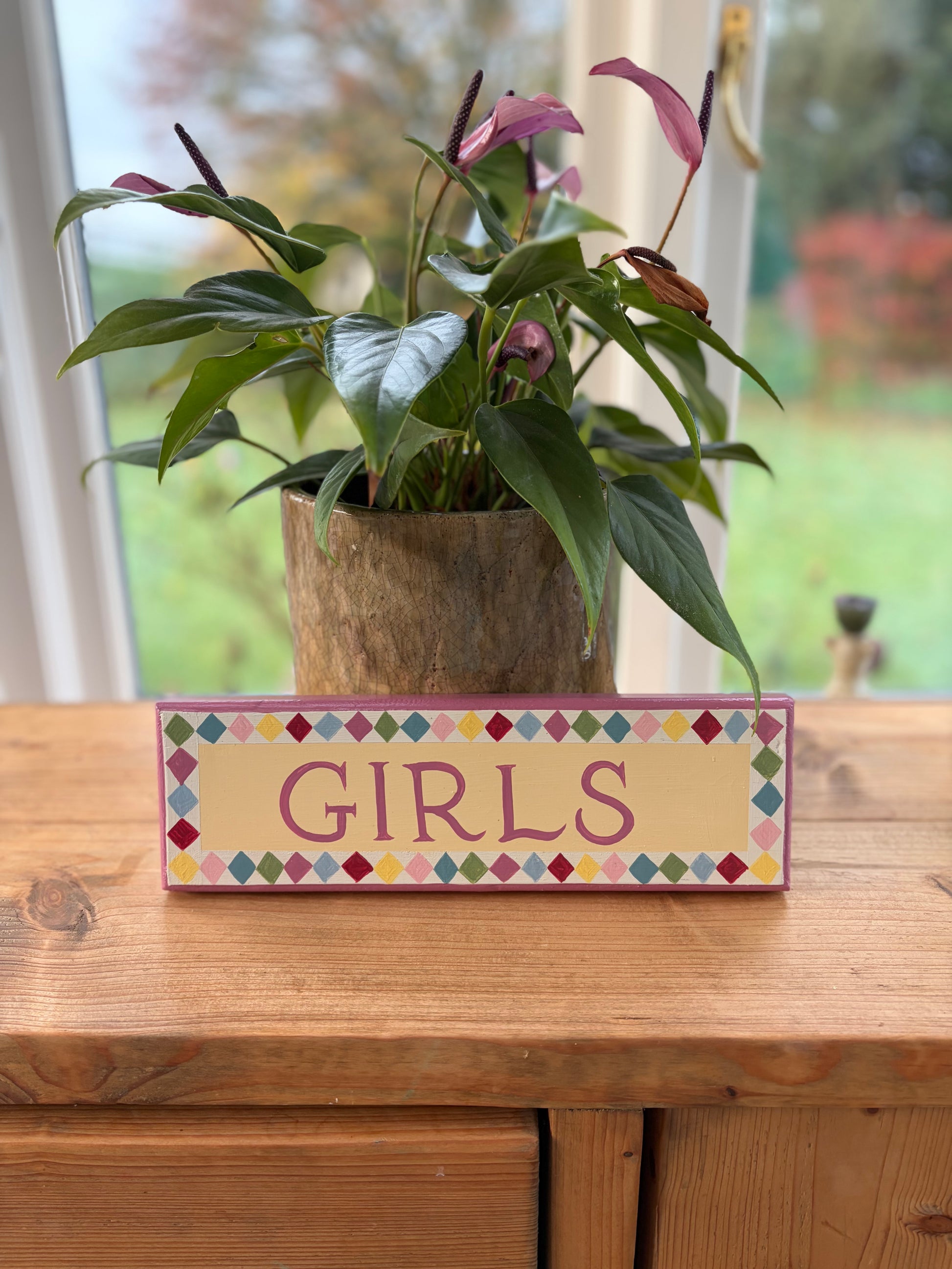 These solid pine plaques are made in the UK and then hand painted by Kirsty in the Cotswolds. Each one comes with adhesive pads to secure to the door. This means no nasty holes in your doors. If you want to remove the sign just use a hairdryer to melt the glue.