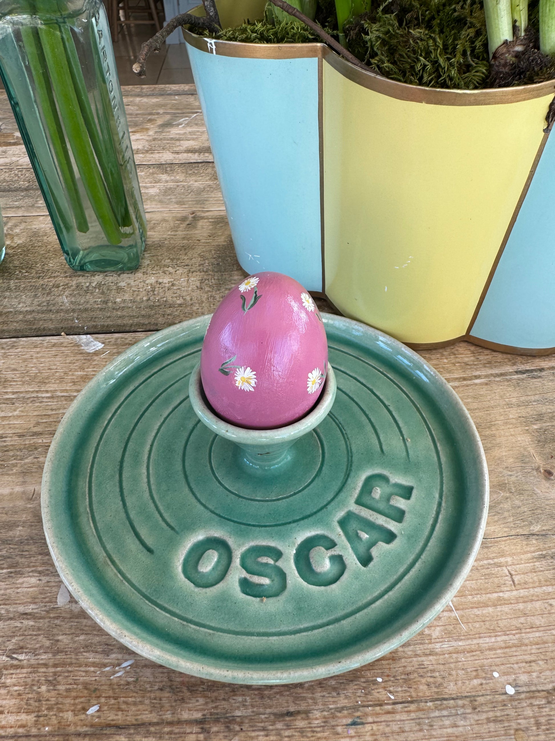 A hand painted ceramic egg measuring approx 4.5 cm x 6cm. Varnished in a protective gloss finish. The perfect addition to your Easter table or an heirloom gift to be enjoyed for years to come.